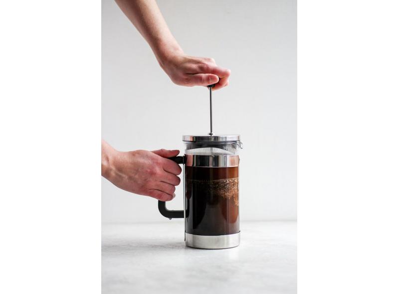 Hemen servis et: French press’te telve ile birlikte bekletmek ekstraksiyonu artırır ve kahve acılaşır. Hazır kahveyi hemen fincana boşalt veya bir servis karafına aktar.